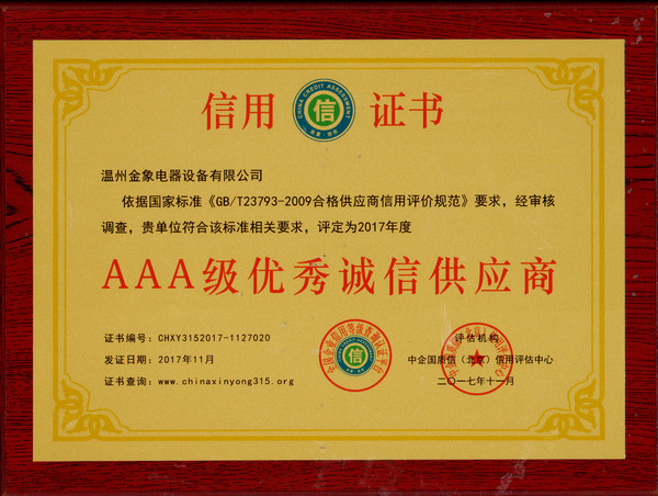 此次評級是對我公司產(chǎn)品和服務(wù)的高度肯定。能夠獲此高度評價(jià),我們要感謝所有為公司付出心血和汗水的企業(yè)員工,幫助我們克服困難的開(kāi)發(fā)區領(lǐng)導,以及所有選擇溫州金象電器設備有限公司的忠實(shí)顧客。